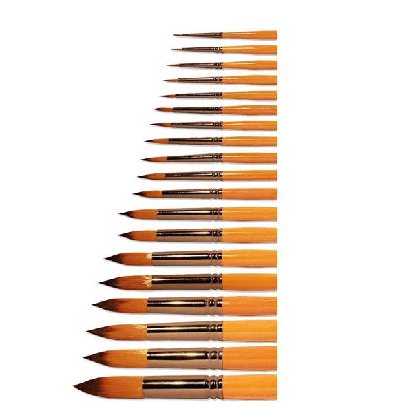 قلمو سرگرد با موی نرم مصنوعی، دسته کوتاه. مناسب اکریلیک، آبرنگ، و هنرهای دستی. شامل 19 قلمو با شماره های 0/4، 0/3، 0/2، 1، 2، 3، 4، 5، 6، 7، 8، 9، 10، 12، 14، 16، 20 و 24 می باشد. محصول چین