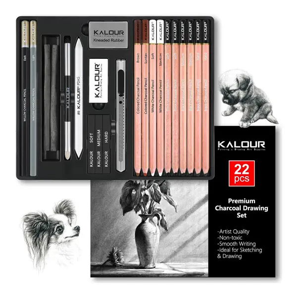 ست طراحی زغالی کالور-Kalour (22 تکه)ایدهآل برای هنرمندان و مبتدیان.