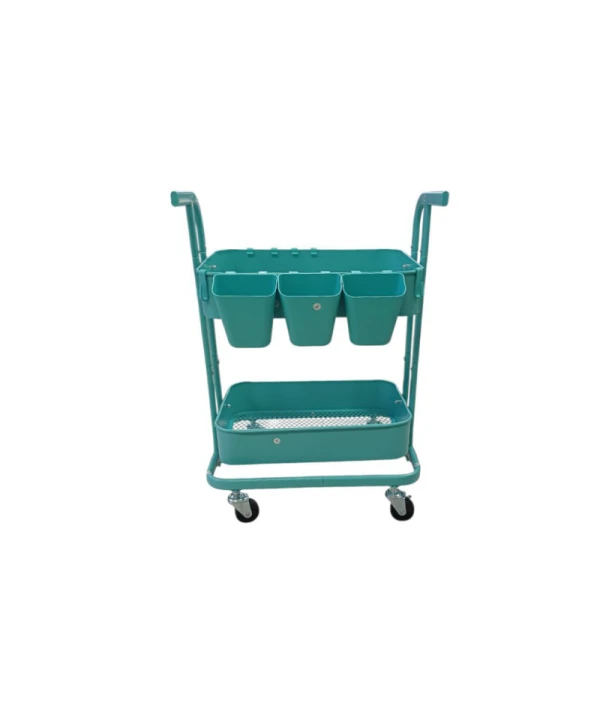 ترولی فلزی رنگی 2 طبقه بسیار کاربردی برای نظم دادنو قرار دادن ابزار های نقاشی و رنگ آمیز در کارگاه و یا اتاق. ساخته شده از آهن با کیفیت بالا، محکم و بادوام ساخته شده به صورت مشبک، توری لانه زنبوری، 4 عدد چرخ