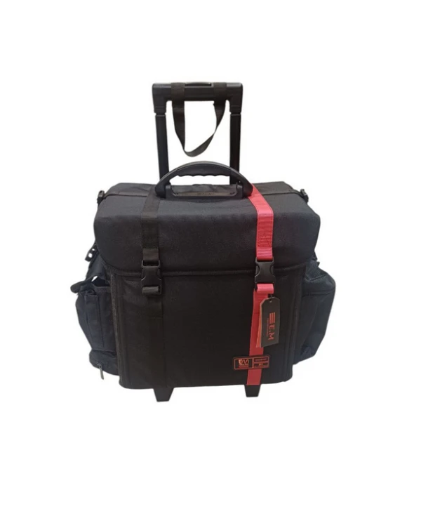 کیف رنگ چمدانی چرخ دار برزنتی EM. برای قرار دادن ابزار و وسایل نقاشی. دارای طبقه و دیوایدر برای جداسازی بخش های کیف.