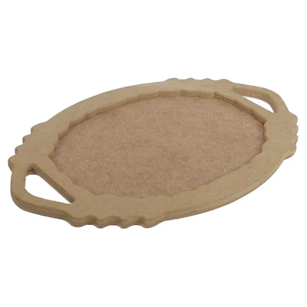 این محصول از ام دی اف واناچای تایلند (یکی از معروف ترین تولید کننده های ورق ام دی اف) ساخته شده است.از ویژگی این ظروف داشتن سطح صاف و صیقلی است که دیگر نیازی به سمباده کاری و ماشین کاری ندارد. این محصول از قابلیت رنگ پذیری بالایی برخوردار است و قابلیت اجرای انواع هنر های دکوراتیو به روی آن ها به سادگی امکان پذیر است.