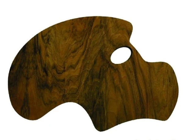 پالت حرفه ای چوبی جنس آن از چوب گردو می باشد. دارای 5 لایه با پوشش دورو. قابل استفاده برای رنگ روغن و رنگ اکریلیک. پشت و رو پوشش پلی استر بی رنگ. محل قرار گرفتن انگشت.