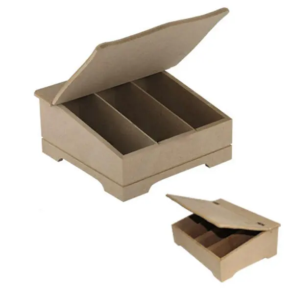 این محصول از ام دی اف واناچای تایلند (یکی از معروف ترین تولید کننده های ورق ام دی اف) ساخته شده است.از ویژگی این ظروف داشتن سطح صاف و صیقلی است که دیگر نیازی به سمباده کاری و ماشین کاری ندارد. این محصول از قابلیت رنگ پذیری بالایی برخوردار است و قابلیت اجرای انواع هنر های دکوراتیو به روی آن ها به سادگی امکان پذیر است.